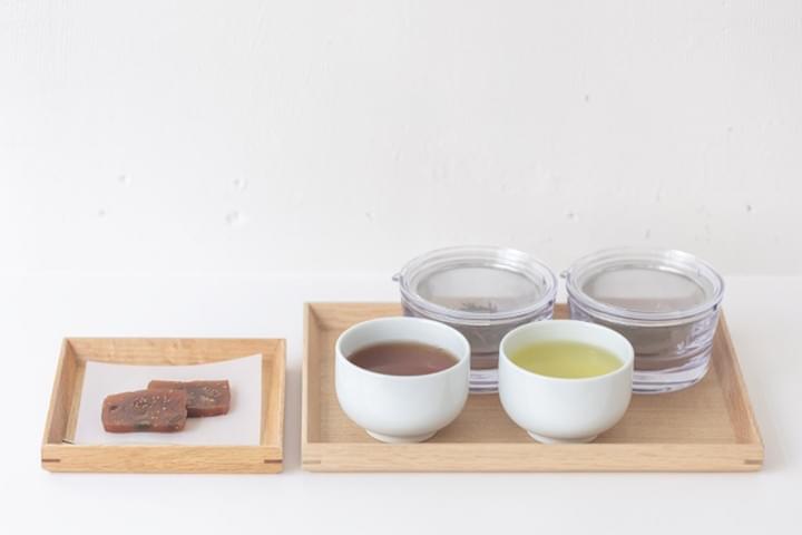 お好みの焙煎温度別の茶葉を一つ選び急須で淹れるお茶とドライフルーツ羊羹をセットにしました。美味しいお茶の淹れ方のレシピをもとに、自分だけに淹れるお茶をゆっくりと味わっていただけます。二煎目、三煎目を楽しんでいただけるようにお湯をご用意しています。